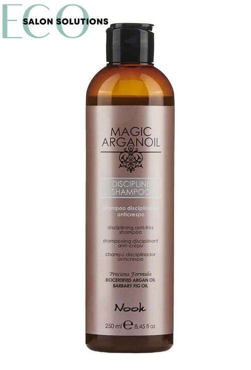 Disciplining Anti-Frizz Shampoo with Organic Argan Oil and Barbary Fig Oil. Ideal for frizzy, rebellious, brittle and dehydrated hair, both straight and curly. Leaves hair incredibly soft and shiny, discipling even the most challenging, dull and porous hair, both fine and thick. Eliminates frizz and controls volume, making it easy to style both straight and natural hair. Brings intense hydration, strength, elasticity and vitality to the hair fiber, leaving the hair visibly silkier and more manageable.